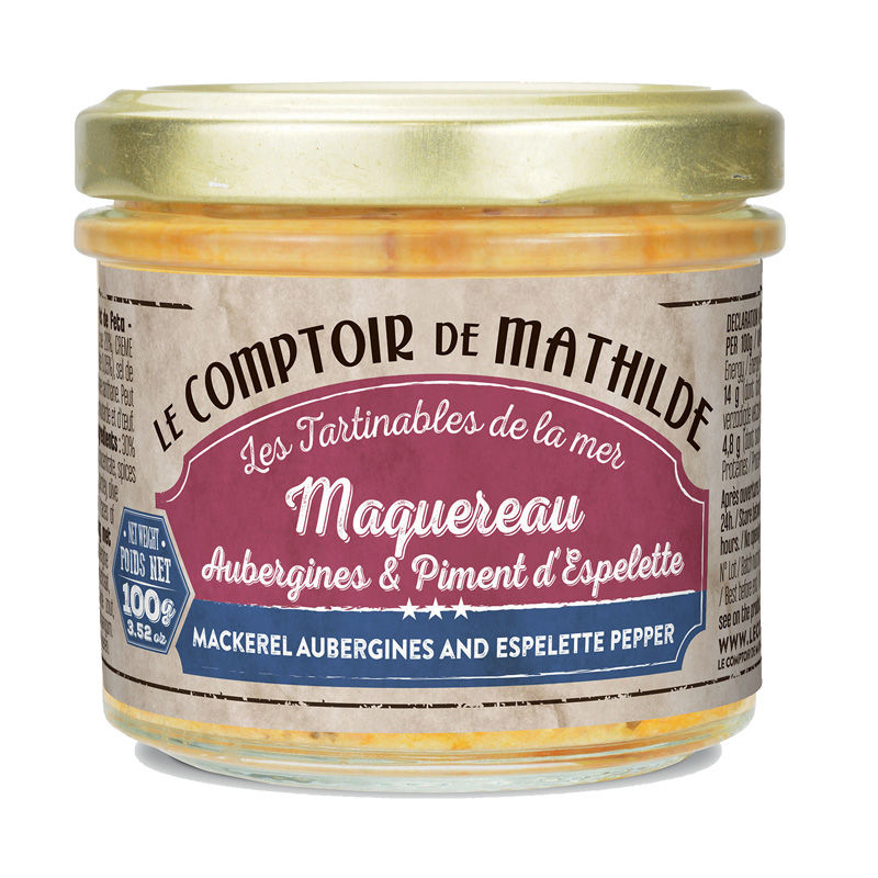 Envie de prendre le large ? Découvrez notre gamme de tartinables de la mer et sentez l’air marin. Grâce à notre tartinable à base de maquereau et d’aubergines au piment d’Espelette vos apéros et préparations culinaires seront étonnants.